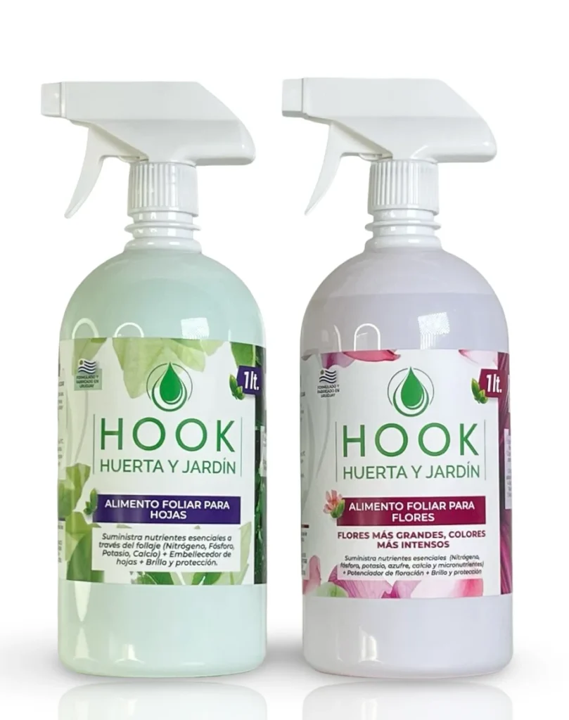 El Kit de dos concentrados nutritivos de HOOK Huerta y Jardín proporciona a tus plantas todos los nutrientes esenciales para un crecimiento fuerte y saludable.